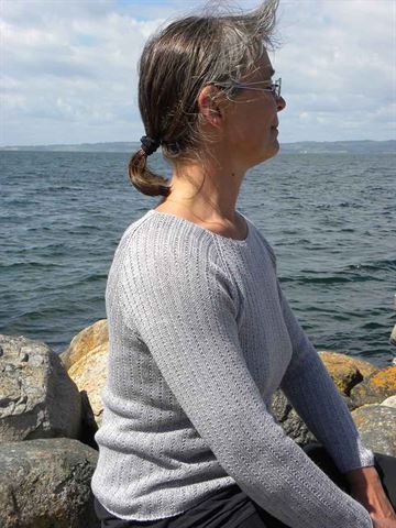 Sweateren er strikket i et meget enkelt ret / vrang mønster. Den kan strikkes i Blackhill Højlandsuld eller en ”luksusudgave”, hvor 3 tråde Blackhill Morbærsilke strikkes sammen med 1 tråd Kashmir/uld
